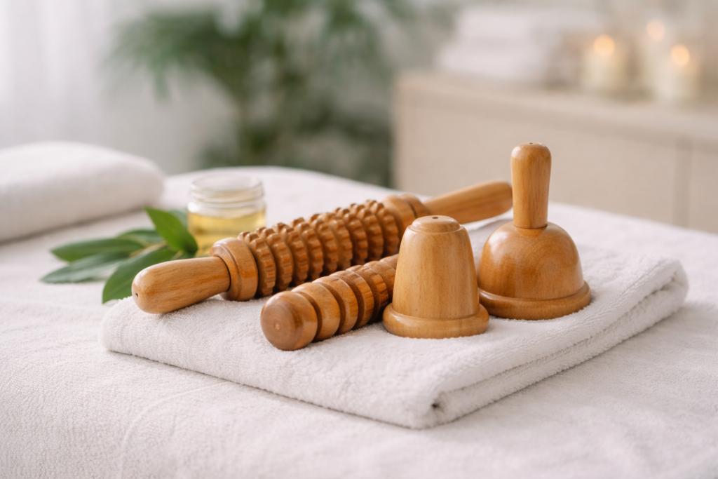 La madérothérapie est une technique colombienne de massage corporel profond réalisée à l’aide d’outils en bois spécialement conçus pour travailler les tissus.